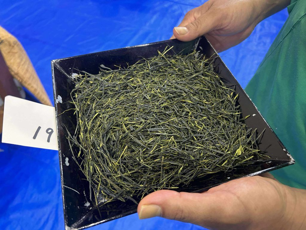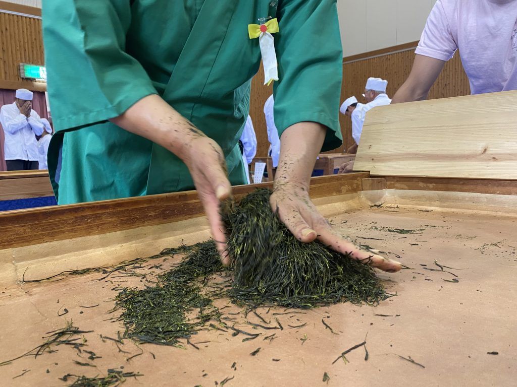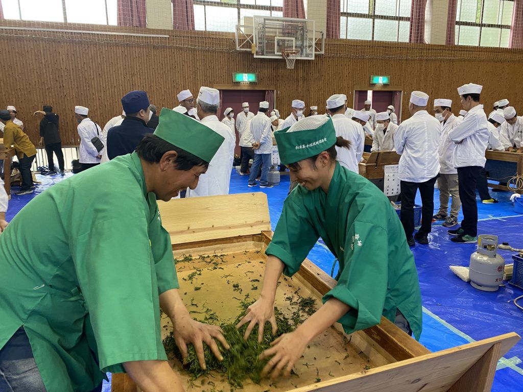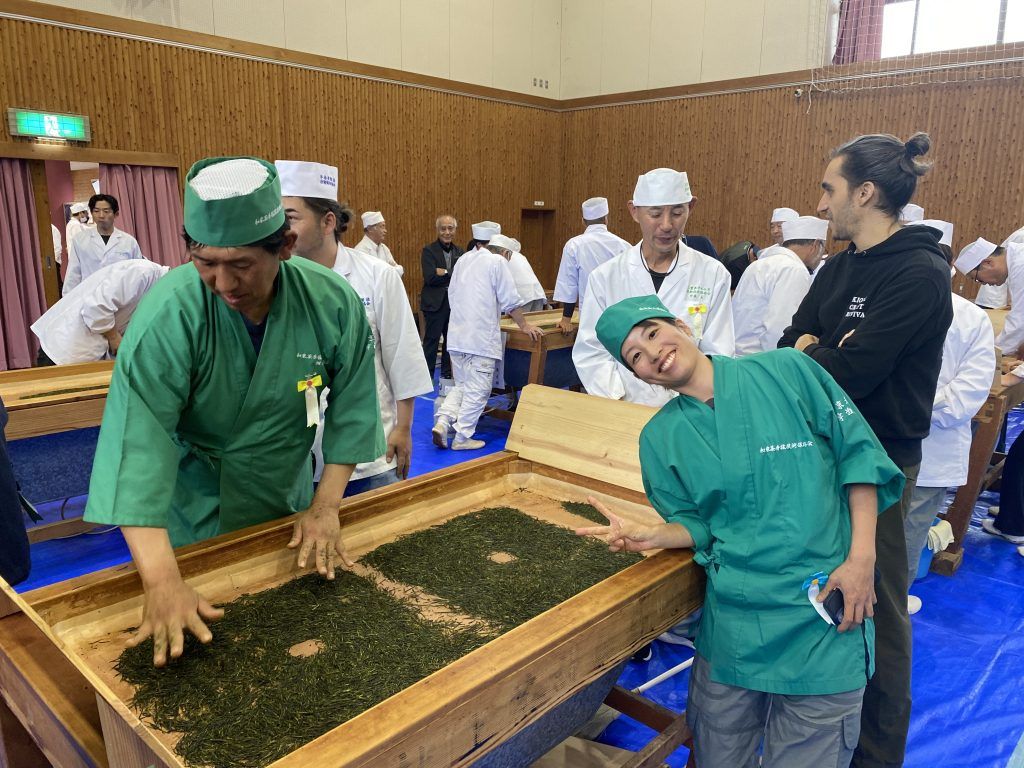 The leaves were wonderfully soft and easy to work with, albeit the exact origin and cultivar remains unknown. While fully focused on rolling, I still caught glimpses of how each region has its own distinct style—something remarkably fascinating. Shizuoka teams, for example, began rolling earlier than those from Kyoto, including us, as we continued haburui (tossing) for quite a while. Some teams’ yokomakuri (rolling and kneading) styles appeared to be faster paced than what I’ve learned in Wazuka, thus, some teams finished considerably earlier than us. I didn’t get to observe much more, as we stayed committed to our own leaves, but it made one curious to join the competition one year purely as an observer, to learn more closely from all these highly skilled individuals. With half an hour left on the clock, we spread the leaves out for their final drying. We made it right on time!