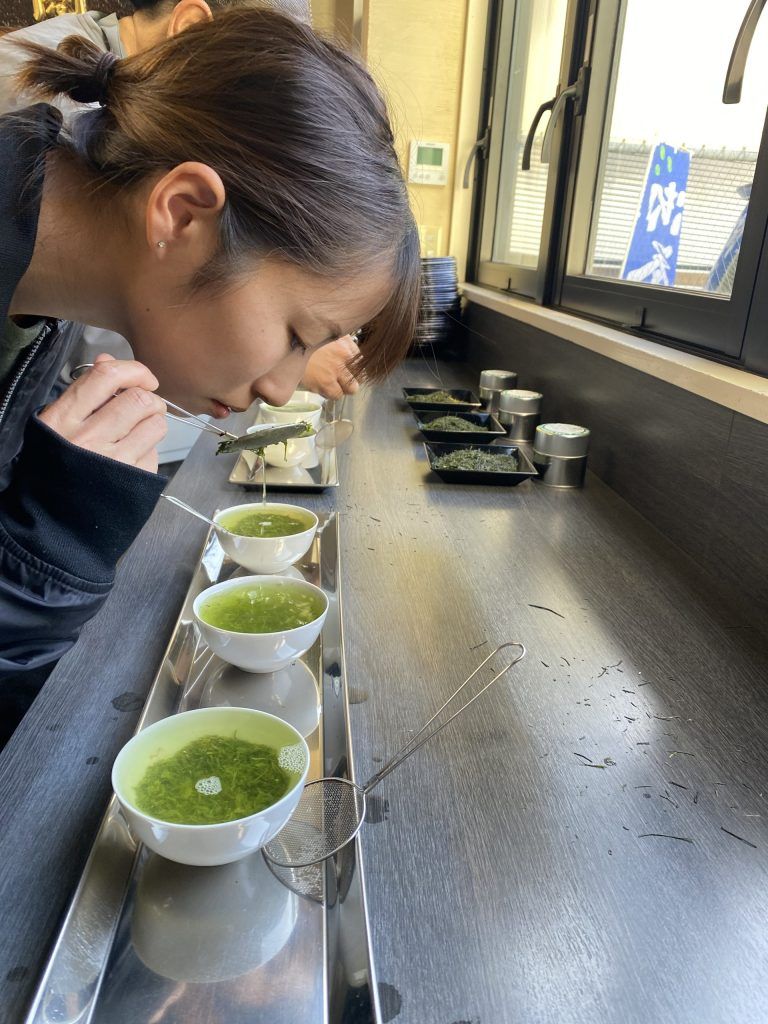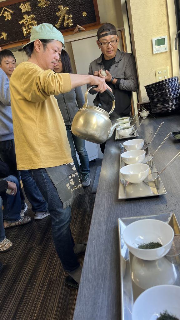 The next day, after a much-needed rest, Kenta-san put together a wonderful itinerary of tea shops and farmers for us to visit while in Shizuoka. Our first stop was Yamaka Katsuyama Shoten (株式会社ヤマカ勝山商店; Google Maps; Instagram), a wholesale tea shop (tonya-san). There, we evaluated around ten different senchas: asamushi, chuumushi, fukumushi, and cultivars such as Yamakai (the owner’s favourite), Saemidori, Asatsuyu, Asanoka, Tsuyuhikari, and Shizu- 7132 (Machiko).