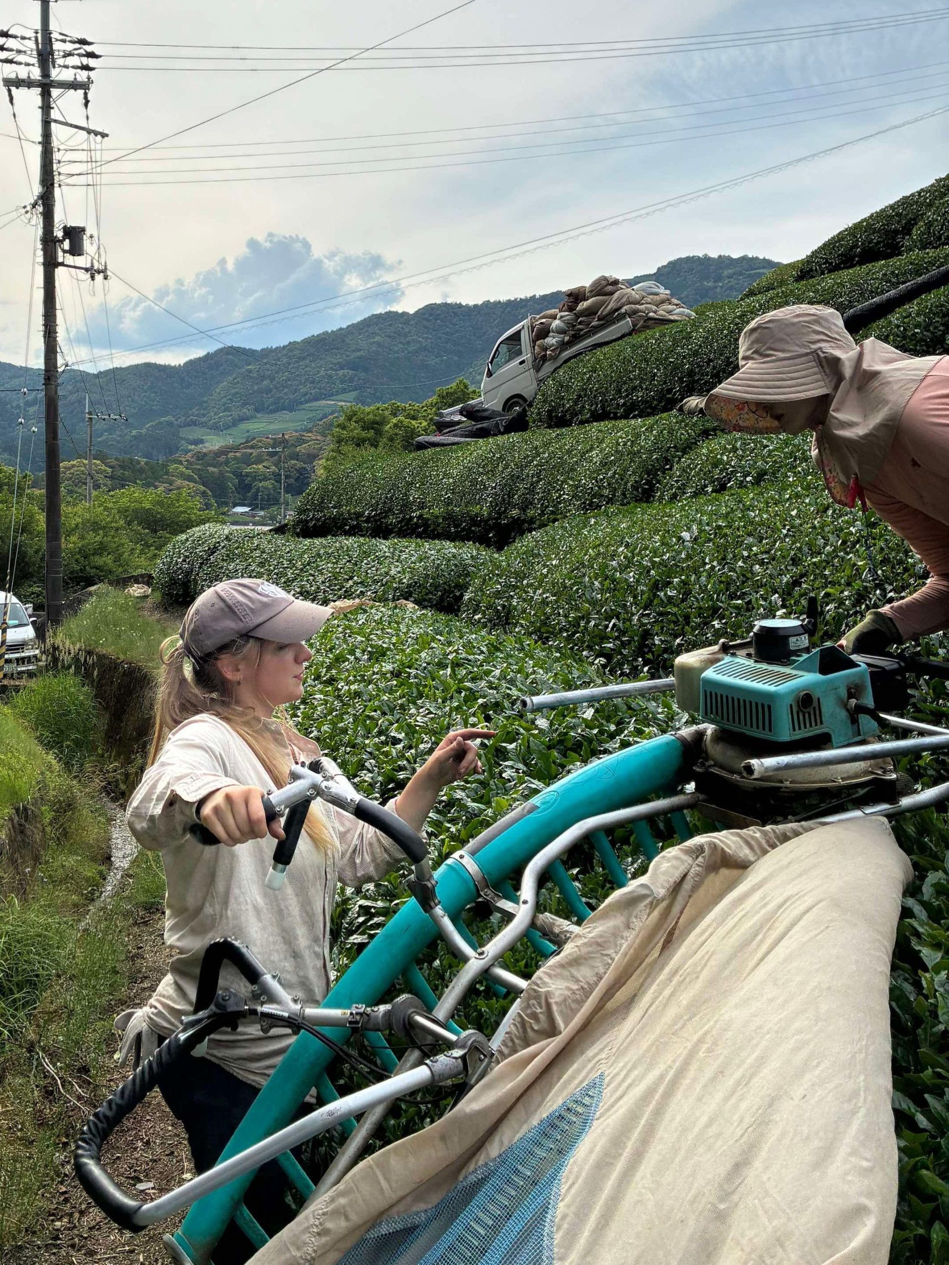 And, most importantly! The friendships you get to forge here! When I was an intern, my co-interns became like a dear family, and now as an assistant manager, I got to witness 7 groups of interns, i.e., 35 incredible souls, coming for this unforgettable Japanese countryside ride. It is a rewarding feeling, and yet bonding for 3 months and then saying the bittersweet goodbyes always happened to be a rollercoaster of emotions. Working here as an AM also allowed us to work more closely with the staff members and it has been truly enlightening to get to learn from them up close. Farming and processing with Akky-san and Miwako-san, wholesale and shipping with George and Kayo-san, tea tour magic with Hiro-san, all things tea education with Pau (and the saponin bro shenanigans, of course), and so much more. The way staff regularly teaches us and trusts us with daily activities of organising tours and farming missions, as well as guiding and teaching interns – I truly keep learning about teamwork here everyday, which I find so beautiful. However, if someone asked what was my favourite activity during the program, I would have to say with zero hesitation – farming and processing. Even in the hottest and most humid of days, I was beyond excited to go to the tea fields and get my hands dirty and break a sweat.