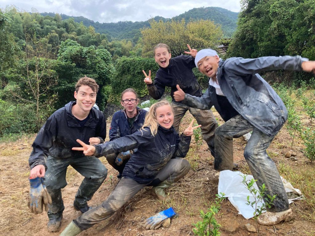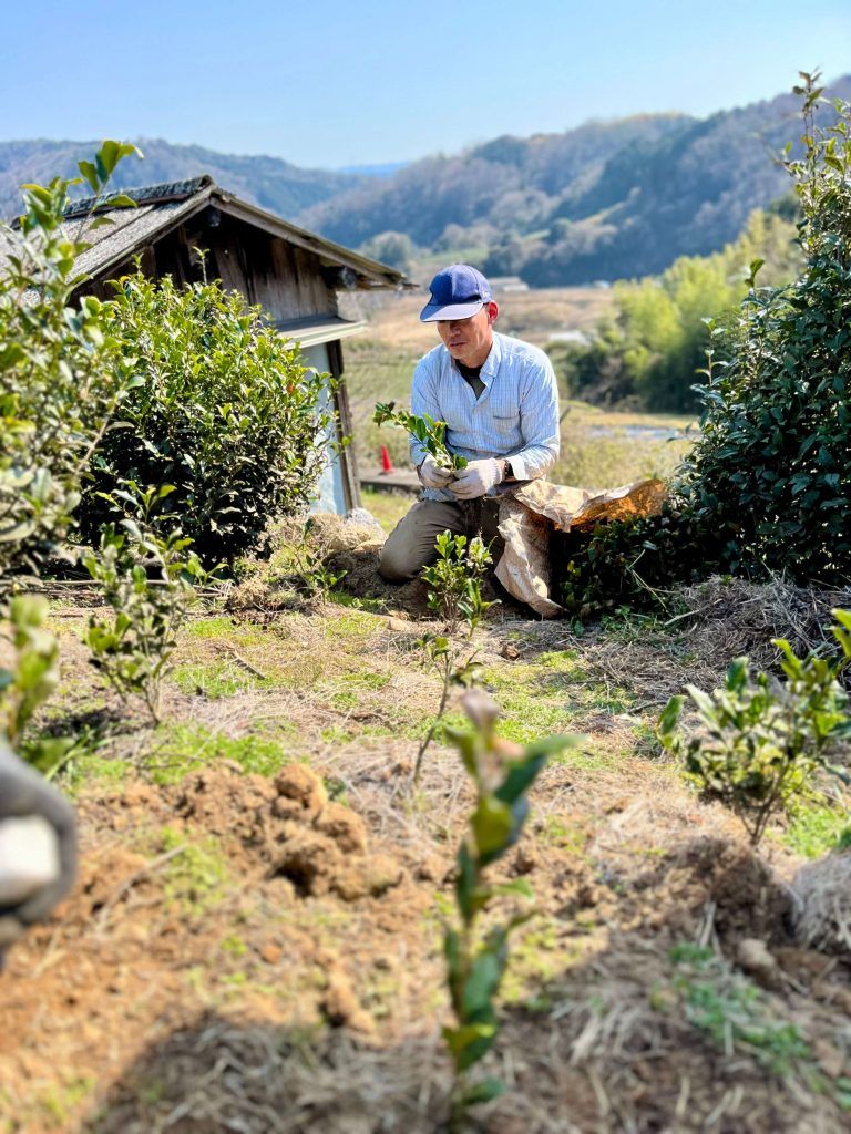 Akky-san and the rest of the farming support team (staff, AMs, and interns) helped to plant some baby Ujihikari plants in our young tea field Kouminkan. The first bushes were planted in this field in autumn 2022 by previous interns Patrick #136, Justin #139, Hannah #137, Alex #135, andKatrina #138 (now staff) with further help from Tran #141 (now Senior AM) Andri #142, Yanis #143 – how they have grown in the almost 4 years since!