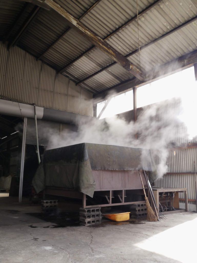 On 16th March, we began our annual Kyobancha harvest! This classic winter tea is a local Kyoto specialty, made from hardy winter tea leaves which are steamed and roasted. Because the winter leaves are so mature, they need to be steamed for over an hour. We don’t have the capacity to do this in our small sencha factory, so we work together with a local factory to bring you this sweet, smokey, gentle winter delicacy.