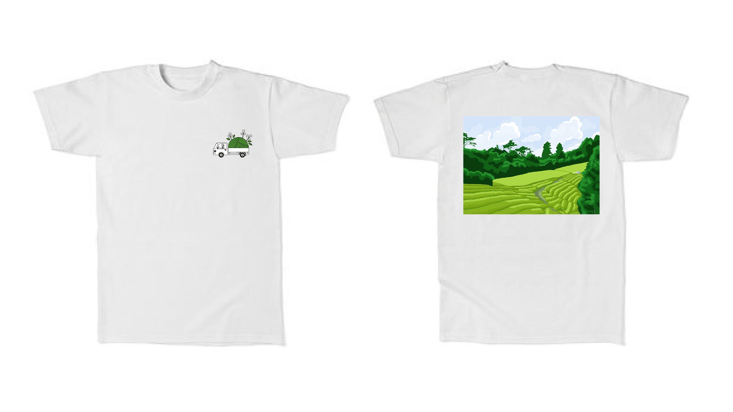 T-shirt (Akky-san’s truck in the front and Tenku tea field in the back )
