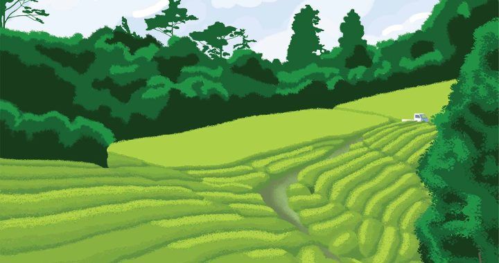 At the end of the day, when I looked back, I saw Akky-san’s white truck resting in the middle of the tea field. The scene was so beautiful that I decided to sketch it.