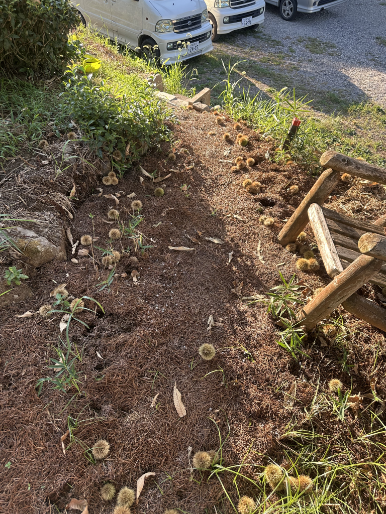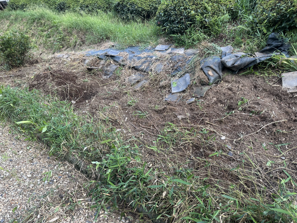I also used a hand saw and trimmed a large branch that was hanging across the driveway and pulled out some old ground cover to spread some tea stem mulch to make weeding the office tea field easier.