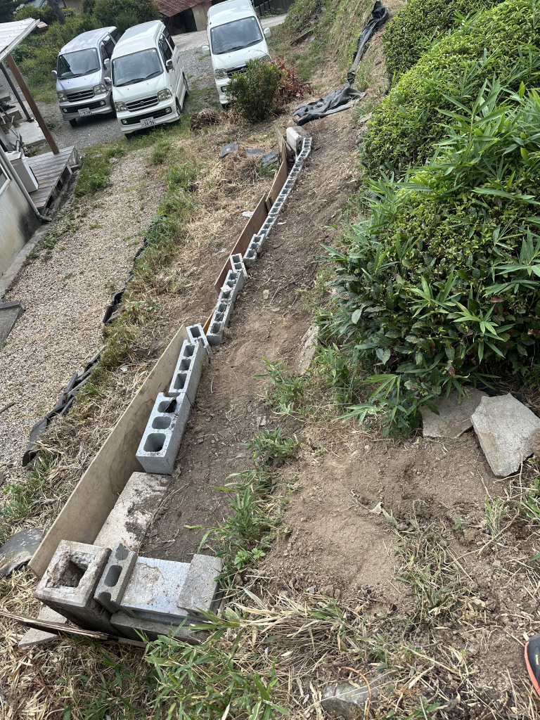 Laid a cinderblock wall with oulets to allow adequate drainage,