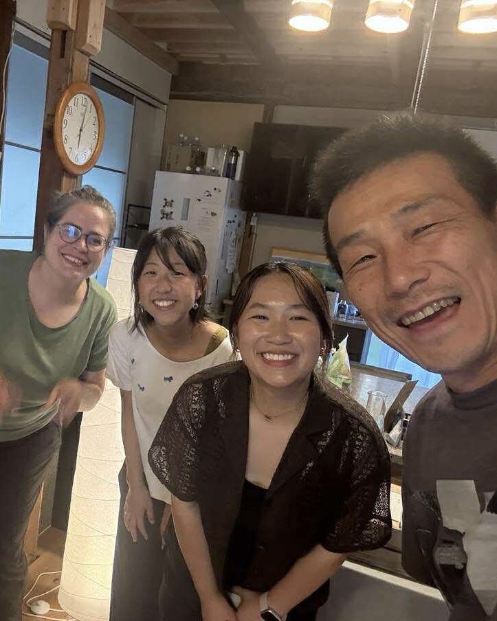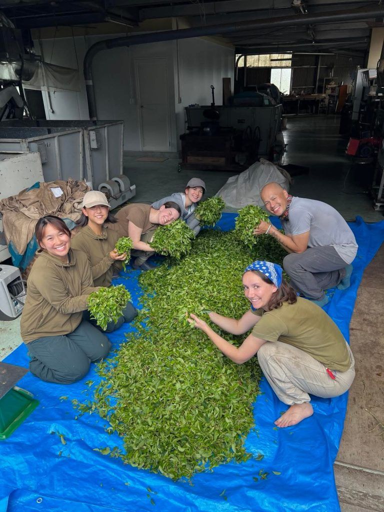 Just a couple of days later, “Camp Obubu” took place. Mia (AM #9) and I unintentionally showed up in matching outfits, just like how camp counselors would, and completed our first independent drive up to Aoimori with Izzy (#200), Garance (#199), KD (#201), and Zehra to harvest leaves to make our own wakoucha. We all took turns leading the machine and supporting each other throughout the process. Whether we did a good job at harvesting, I’m not too sure of, but many laughs and smiles were shared and it really just really just made us feel like kids at camp again. To add to those vibes, we spent the entire day sorting our leaves and ended the day watching “Mean Girls” together on the second floor of the factory. The following day, we rolled our tea, let it oxidize and on the third day, we dried our teas. Overall, it was a very special and fun moment especially since this was the first time I ever got to make my own tea starting from harvesting until the final drying process.
