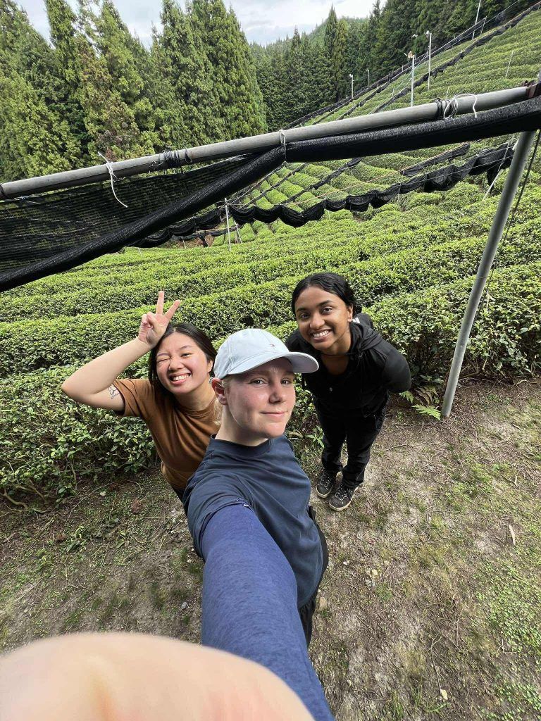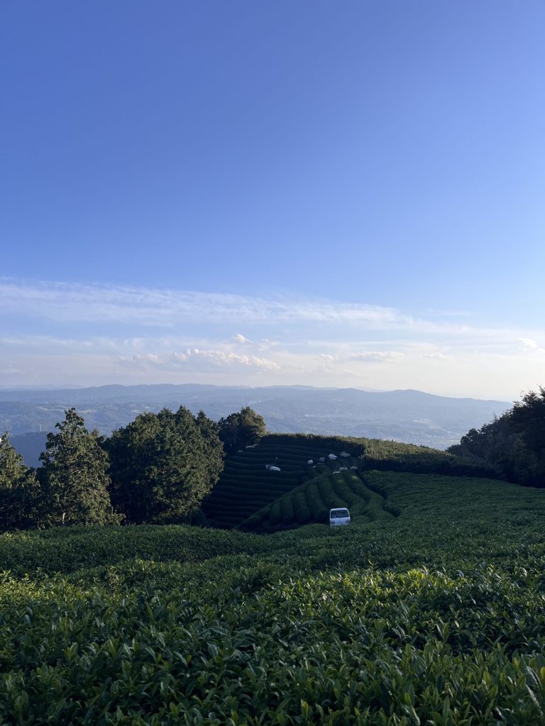 As I am writing this, the sun is going down behind the mountains, casting a soft light on the tea fields in the Monzen area. The trees dotting the hills in the back are turning – some faster than others and red and brown and some are slower, yellow and orange. The tea fields have darkened after the autumn harvest and trimming, the cool green of bancha. They look very similar to how they did when Mari (#11), Mia (#9), Tran (#12) and I first arrived in Wazuka, and it really feels like we have come full circle.